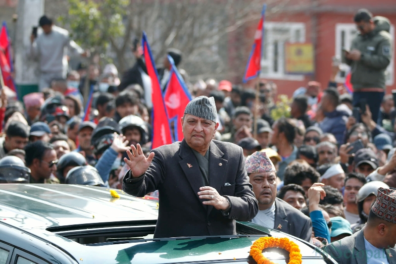 काठमाडौं । पूर्वराजा ज्ञानेन्द्र शाह झापाबाट काठमाडौं आउँदा त्रिभुवन अन्तर्राष्ट्रिय विमानस्थलमा उनका समर्थकले भव्य स्वागत गरेका छन् । जिल्ला प्रशासन कार्यालय काठमाडौंले निषेधाज्ञा जारी गरेपनि …