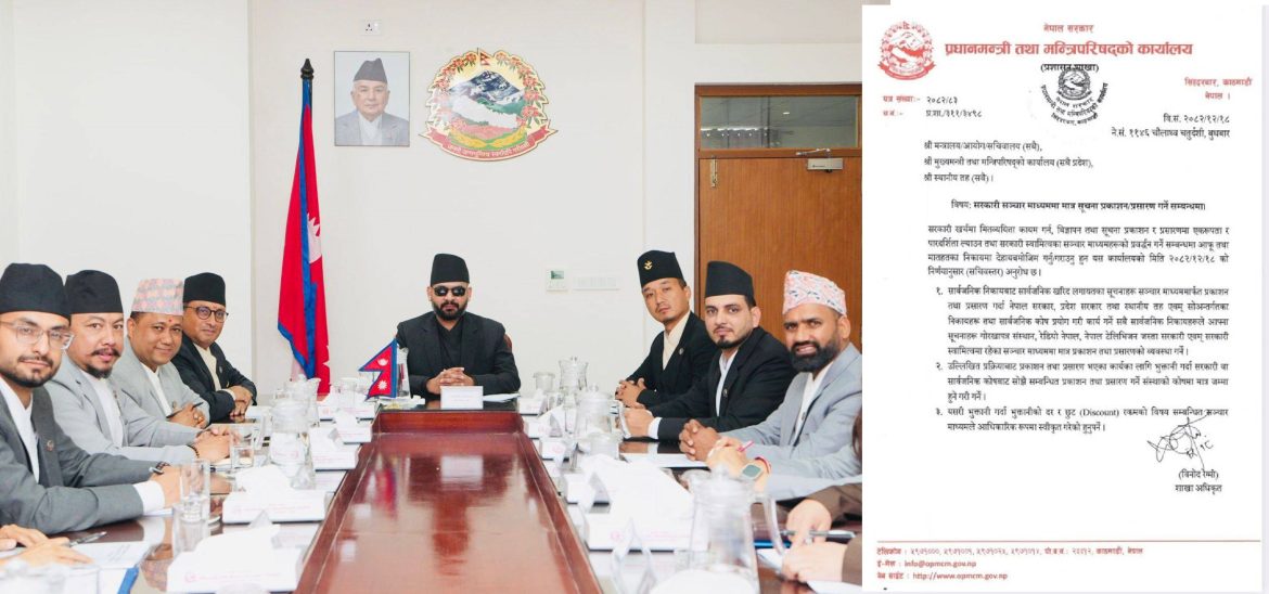 काठमाडौं, १९ चैत्र – नेपाल सरकार, प्रधानमन्त्री तथा मन्त्रिपरिषद्को कार्यालयले सरकारी खर्चमा मितव्ययिता कायम गर्न तथा सूचना प्रवाहलाई एकरूप र पारदर्शी बनाउन सरकारी सञ्चार माध्यममार्फत …