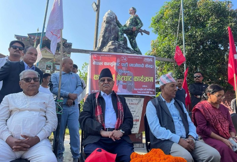 काठमाडौं, ३० आश्विन – नेकपा (माओवादी केन्द्र) का महाधिवेशन आयोजक समिति संयोजक पुष्पकमल दाहाल ‘प्रचण्ड’ ले शुक्रबार बिहान चितवनको भरतपुर कृष्णपुरस्थित जिल्ला पार्टी कार्यालय प्राङ्गणमा (चितवन कार्यालय भवन जलाइएको छ) आयोजित कार्यक्रममा पार्टीका नेता तथा कार्यकर्तालाई भेटघाट तथा सम्बोधन गरेका छन् ।