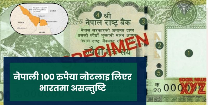 काठमाडाै, १७ मंसिर – नेपाल राष्ट्र बैंकले मंसिर ११ देखि सय रुपैयाँका नोटहरु प्रयोगमा ल्याएको छ । उक्त नोटमा नेपालको लिम्पियाधुरा, लिपुलेख, कालापानी सहितको परिमार्जित नक्शा समावेश छ । हाल भारतिय मिडियामा यस विषयको ठूलो आलोचना भइरहेको छ । प्रतिपक्षी भारतिय राष्ट्रिय कांग्रेस पार्टीले पनि सामाजिक सञ्जाल मार्फत विरोध व्यक्त गरेको छ ।