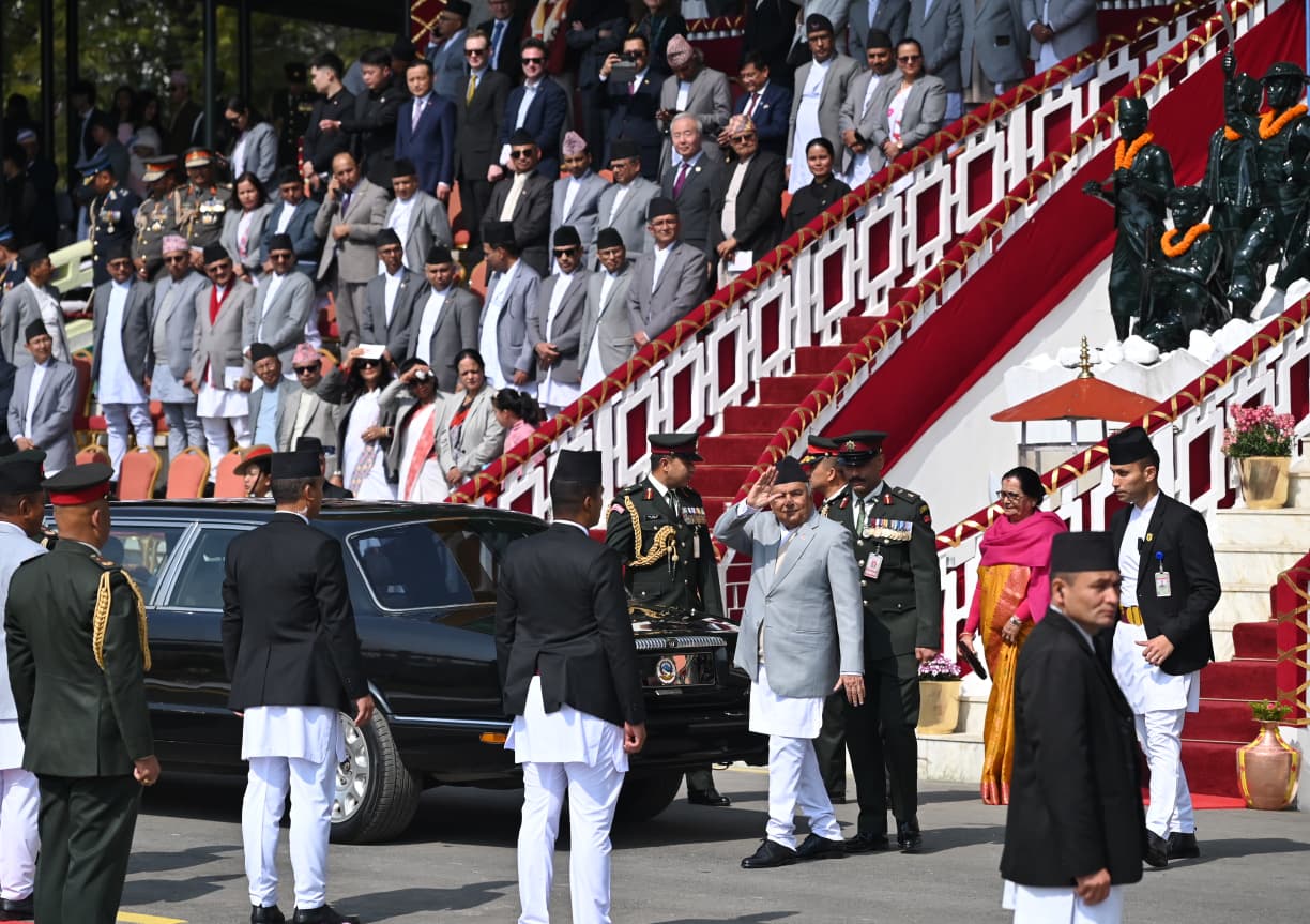 काठमाडौँ , ३ फागुन – महाशिवरात्रि तथा नेपाली सेना स्थापनाको २६३ औं वार्षिकोत्सवको अवसरमा राष्ट्रपति रामचन्द्र पौडेल नेपाली सेनाले सैनिक मञ्च टुँडिखेलमा आयोजना गरेको विशेष समारोहमा सरिक भएका छन् । आइतबार बिहान राष्ट्रपति पौडेल प्रथम महिला सबिता पौडेलसहित नेपाली सेनाले आयोजना गरेको सो बढाईं तथा सैनिक कला प्रदर्शनी – २०८२ समारोहमा सरिक भएका हुन् ।